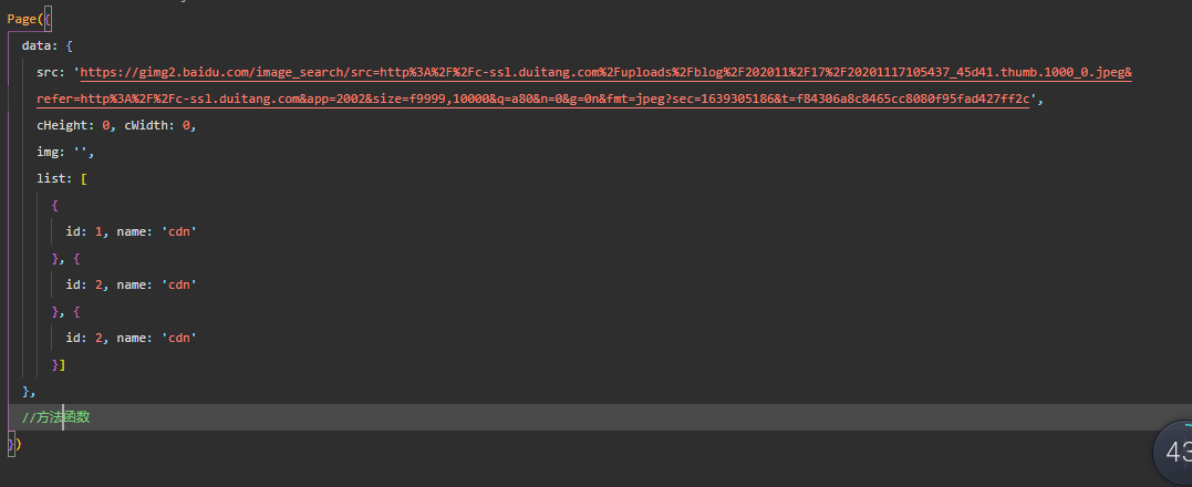 看你js中list的数组符号颜色不太对劲,应该没放进data