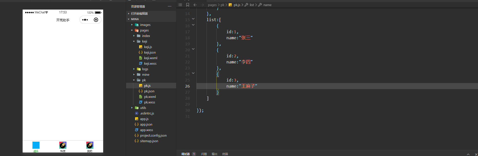 <view>{{item.id}}---{{item.name}}</view>