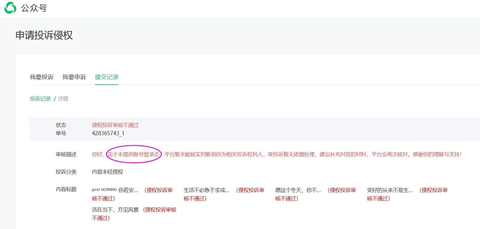 - 拿得出账号后台证据还被拒?微信公众号这是明着包庇侵权者?