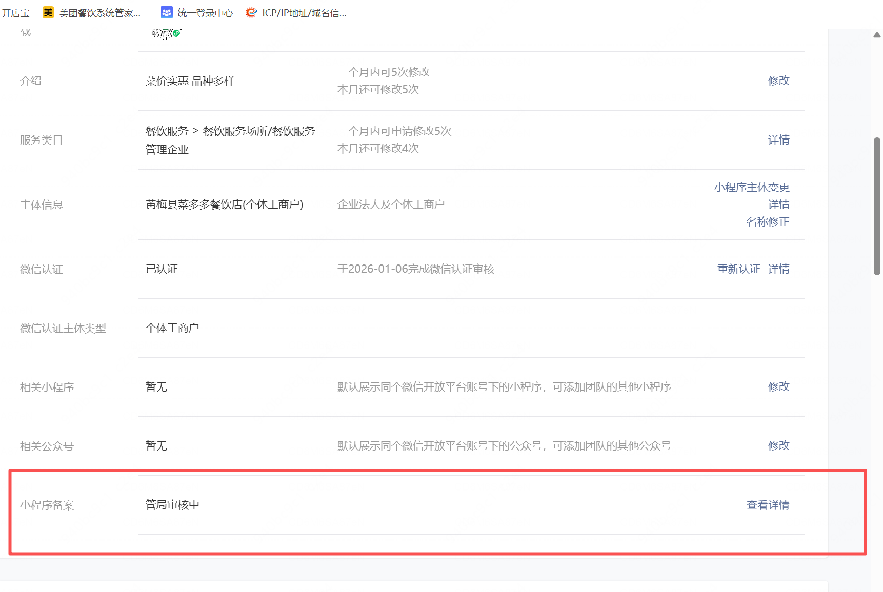 你好,该小程序APPID:wx4ac5db97b21f0e4b 当前备案订单状态为等候管局审核中,各省通信管理局将在1-20个工作日内(具体以实际审核时间为准)完成审核,审核结果以站内信、模板消息、短信等形式通知。