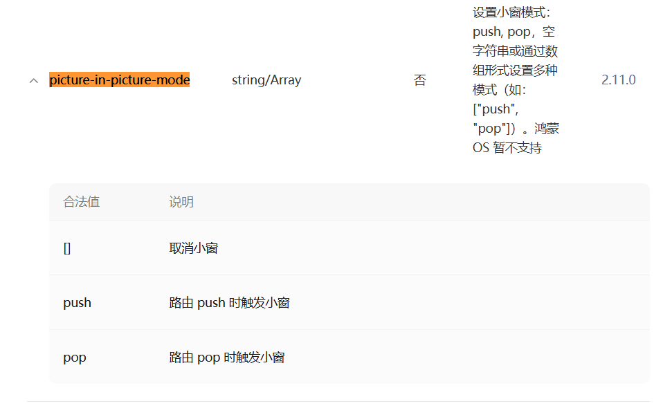 我在组件中添加了picture-in-picture-mode="[]",还是会有画中画的按钮,而且点击之后就会退出小程序回到微信页面,这个画中画经常关闭不了。