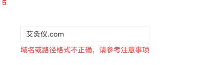 然而配置时,填中文域名提示格式不正确,填中文转码域名