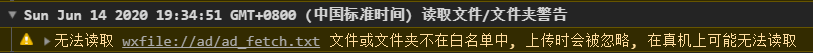 无法读取 wxfile://ad/ad_fetch.txt 文件或文件夹不在白名单中, 上传时会被忽略, 在真机上可能无法读取