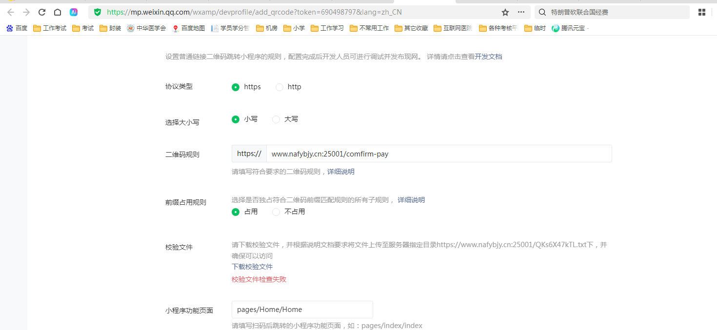 配置小程序可以从其他网址打开,为什么总是提示校验失败呢?这个地址直接访问都能访问到,也反复检查存放位置,并更上级也放了。请教各位大神,如何排查呢?