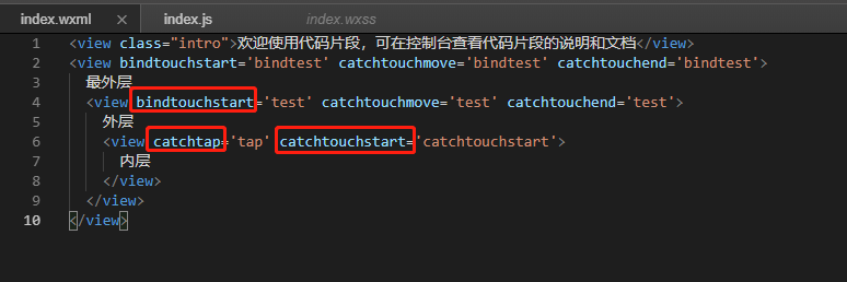 点击代码片段中的外层可捕捉到touch事件,点击内层无法响应tap事件
