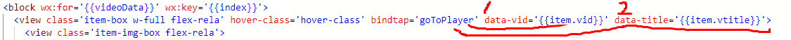 渲染的时候我用了自定义属性:我只需要把vid和vtitle从index传到player,定义属性如下