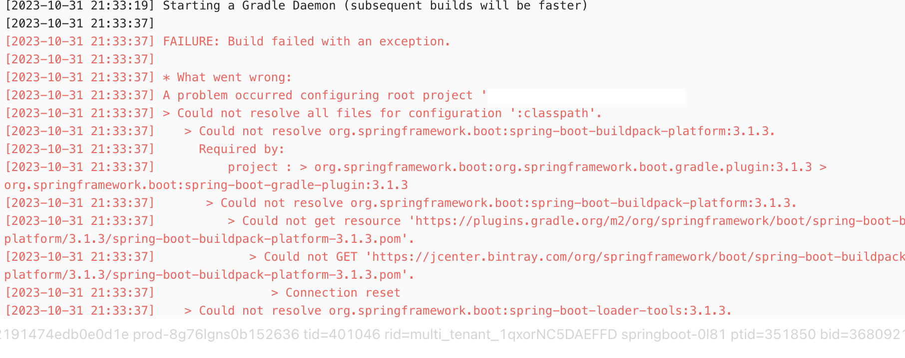 如题,使用的gradle jdk 17, springboot, dockerfile, 本地工作,云托管部署总是不成功,在gradle build的时候依赖下载不下来,总是connection reset, 错误如下图,求指点: