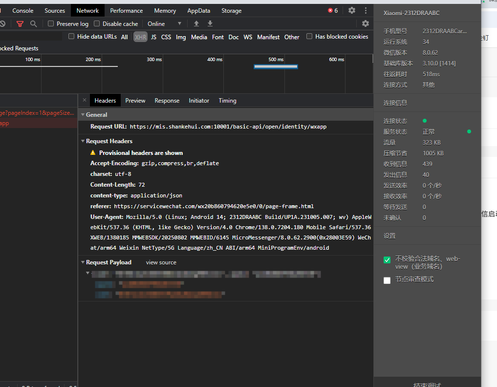 我的情况 :访问线上接口地址 https://mis.shankehui.com:10001/basic-api ,pc端启动小程序接口能正常访问得到返回,手机端微信启动小程序无法调用接口无返回