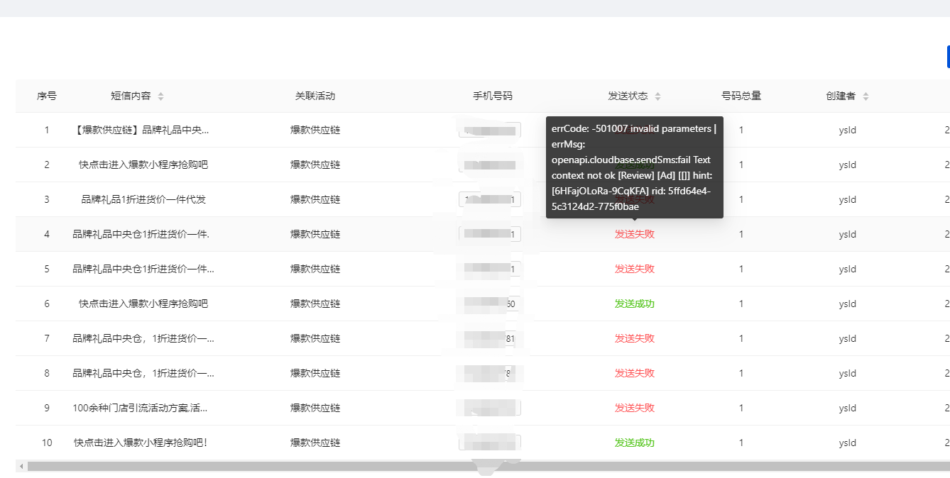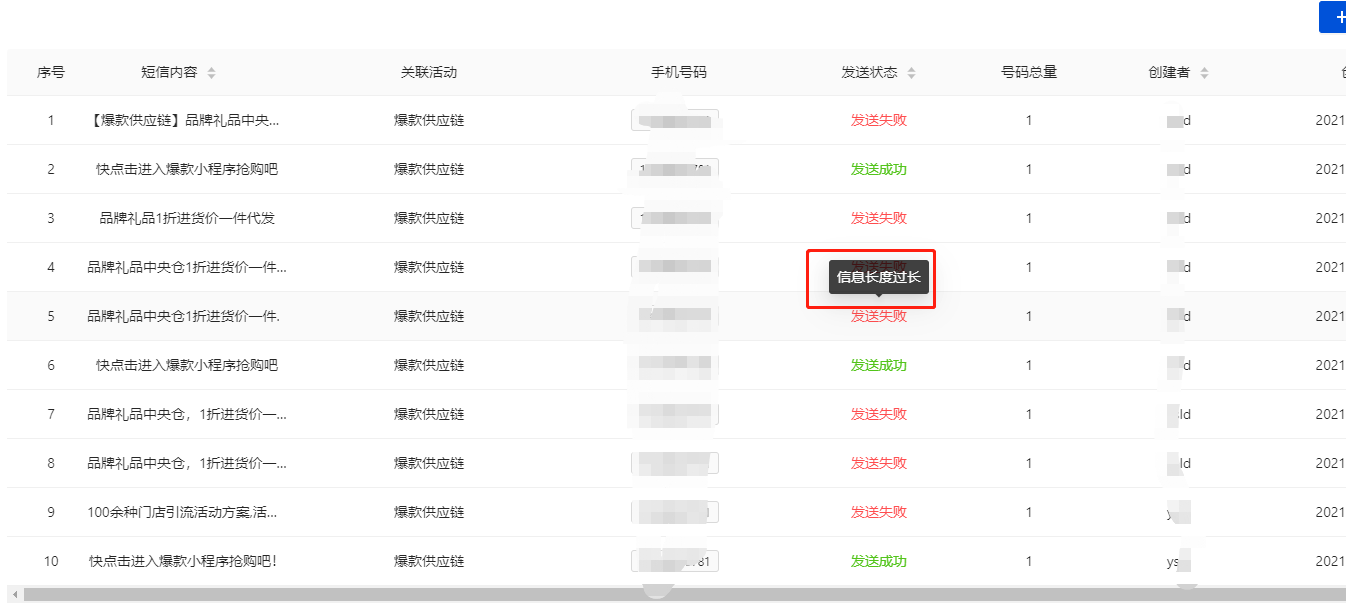 短信管理:明明没有30个字符却提示超出,且发送的短信会被拦截;