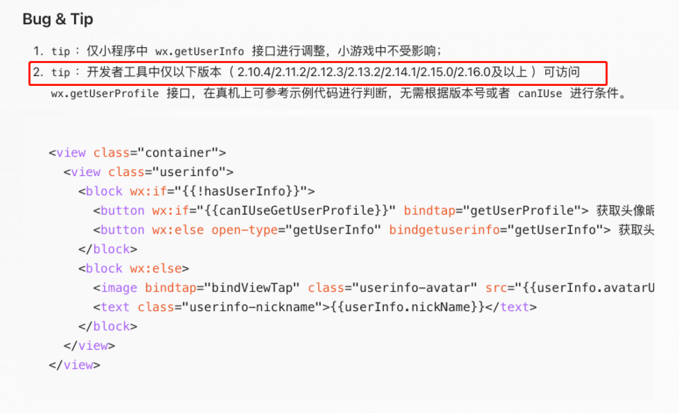 wx.getUserProfile 文档里说从2.10.4开始支持。