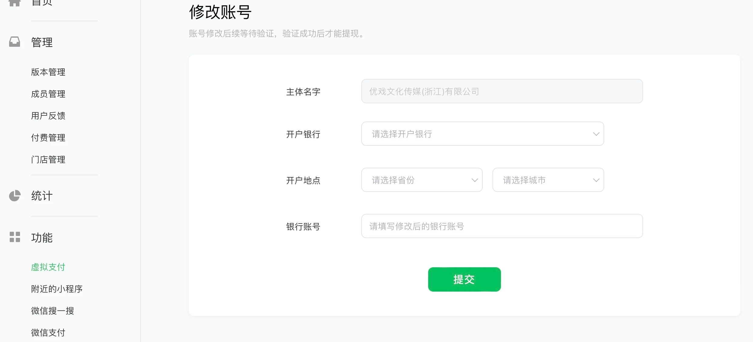 查了一下,你们是小程序主体本身就写错了,更新了小程序主体 就可以直接改银行卡了