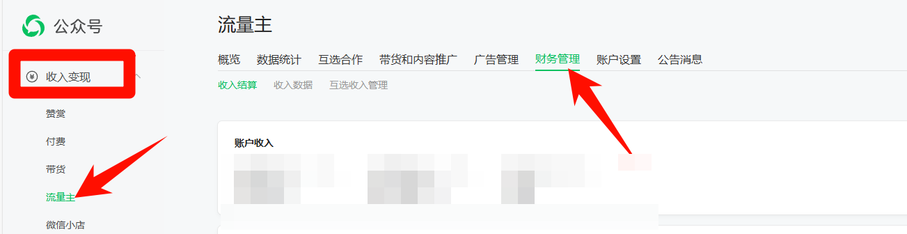 收入变现——流量主——财务管理,然后拉到底部,就可以看到财务信息绑定的银行卡了。