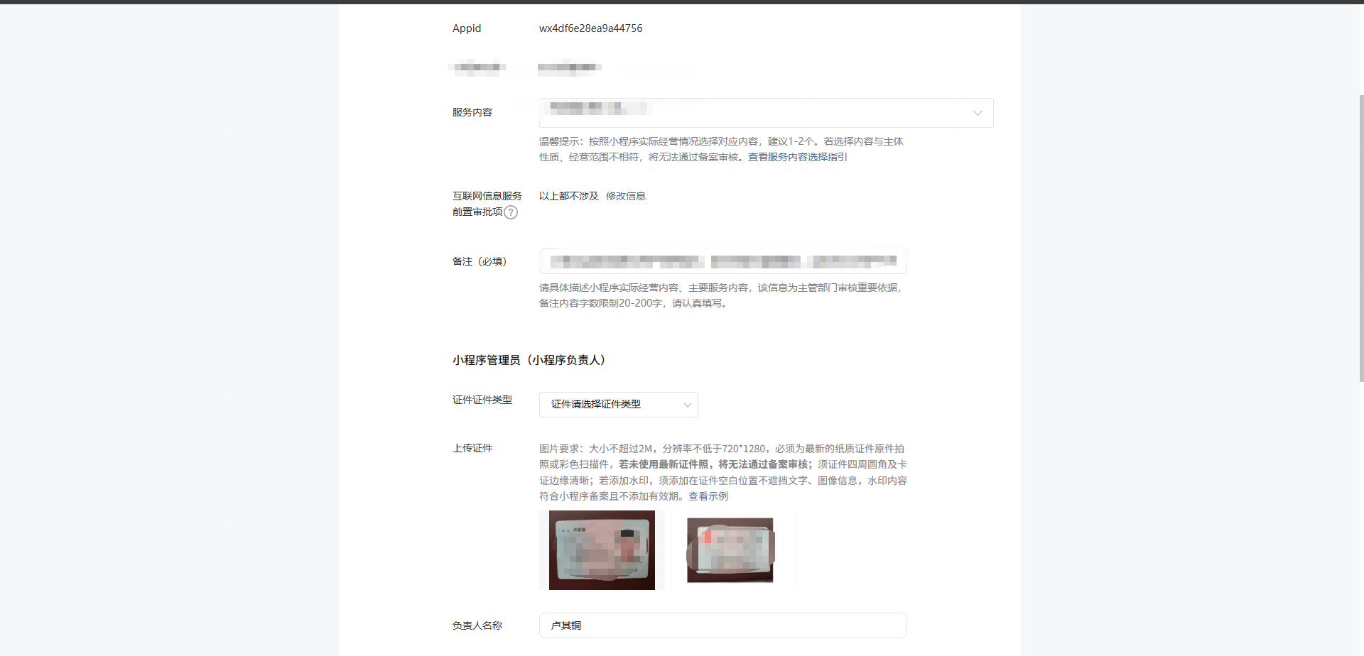 1、小程序备案信息:【账号设置】→【基本信息】页面→【小程序备案】→ 【详情】页面查看"小程序负责人"字段