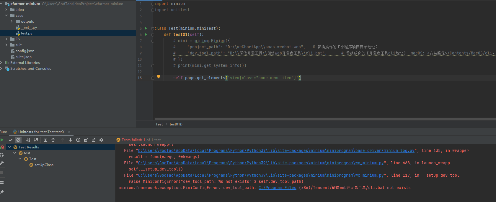 https://minitest.weixin.qq.com/#/minium/Python/framework/suite