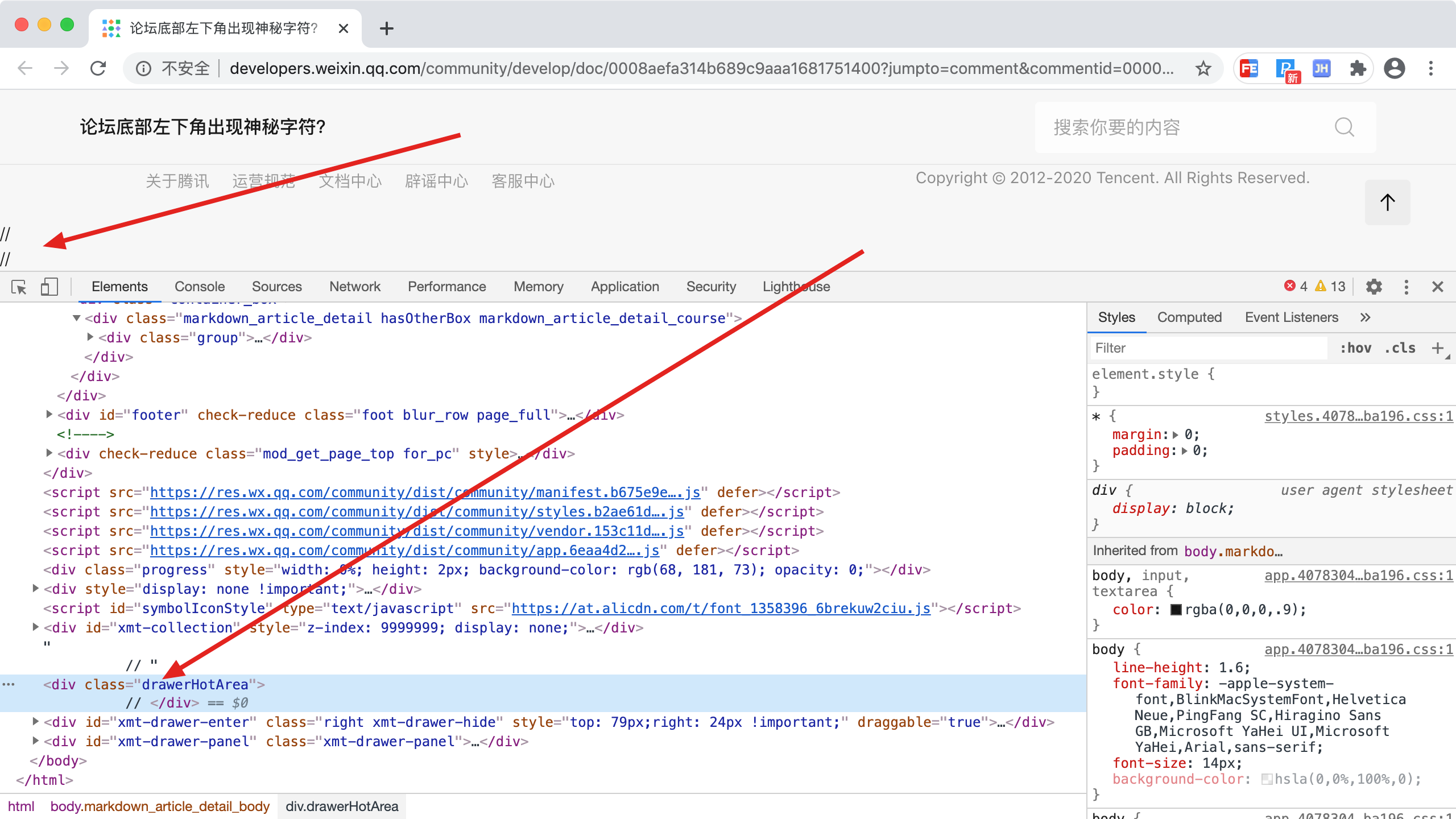 论坛底部左下角出现神秘字符?