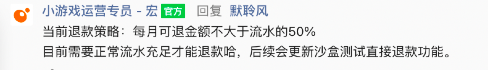 我发游戏在沙箱环境下进行测试,但是部分款项无法进行退款操作。提示账户可退余额不足。看之前官方的回复是:每月可退款不大于流水50%。前期并无提示金额不可退款。因为是在沙箱情况下进行的测试,那后续上线配置现网key,转现网环境后,沙箱环境内测试的钱还可以正常退出吗。如不能,那沙箱测试环境的款如果退给别人????