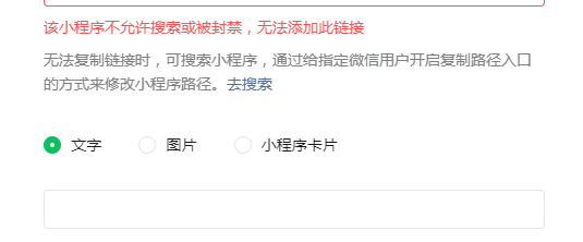 就是字面意思,小程序禁止搜索或被封了,联系小程序登录后台看看吧
