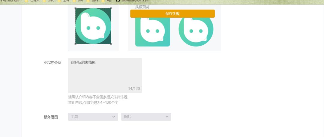 新注册小程序审核成功后,完善资料上传了头像,但是却提示保存失败