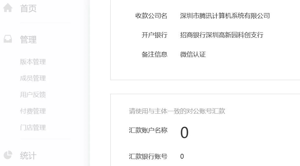 汇款对公账户名称和汇款银行账号显示为0