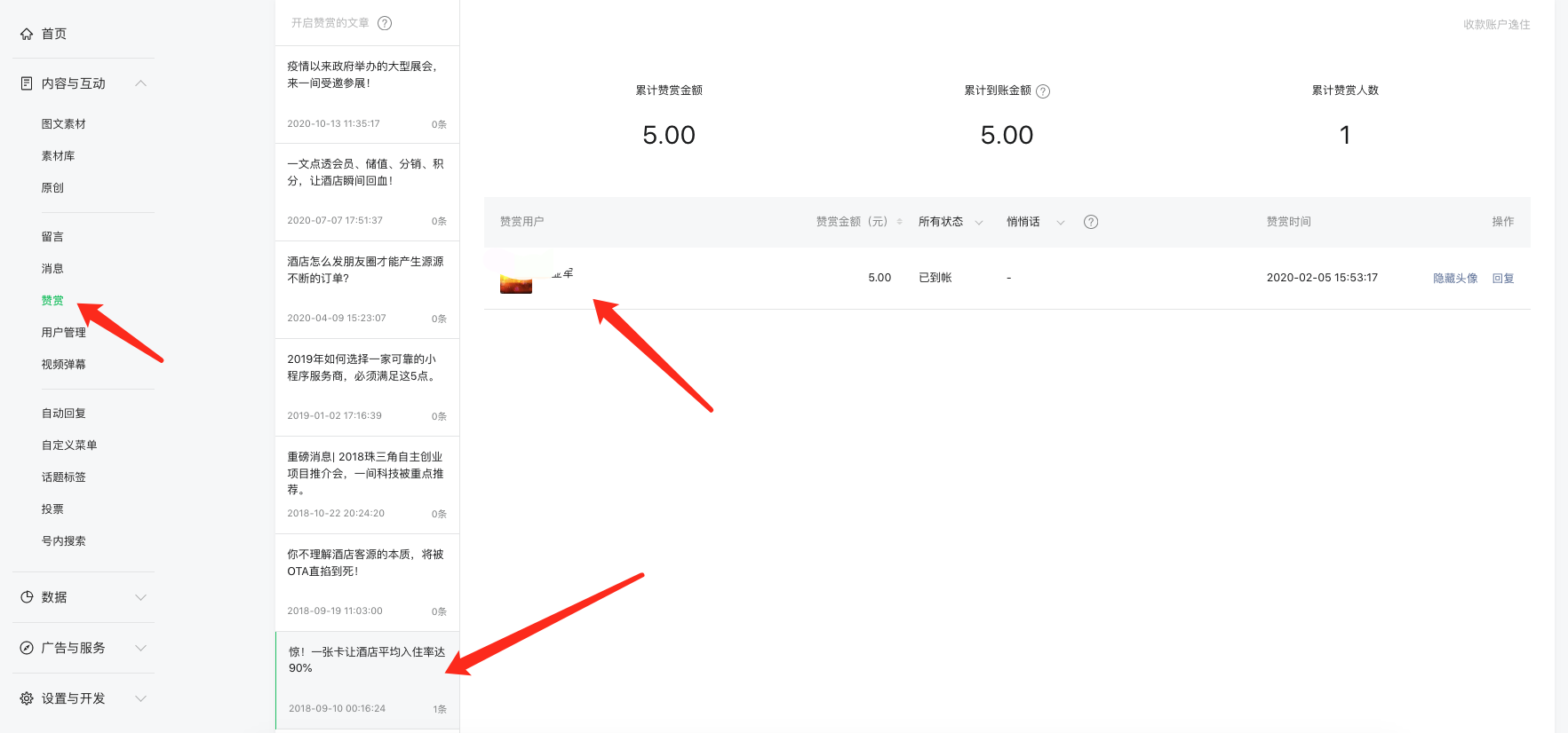 为何我的公告号看不到赞赏人的信息,还有为何我的赞赏回复,别人赞赏了看不到?