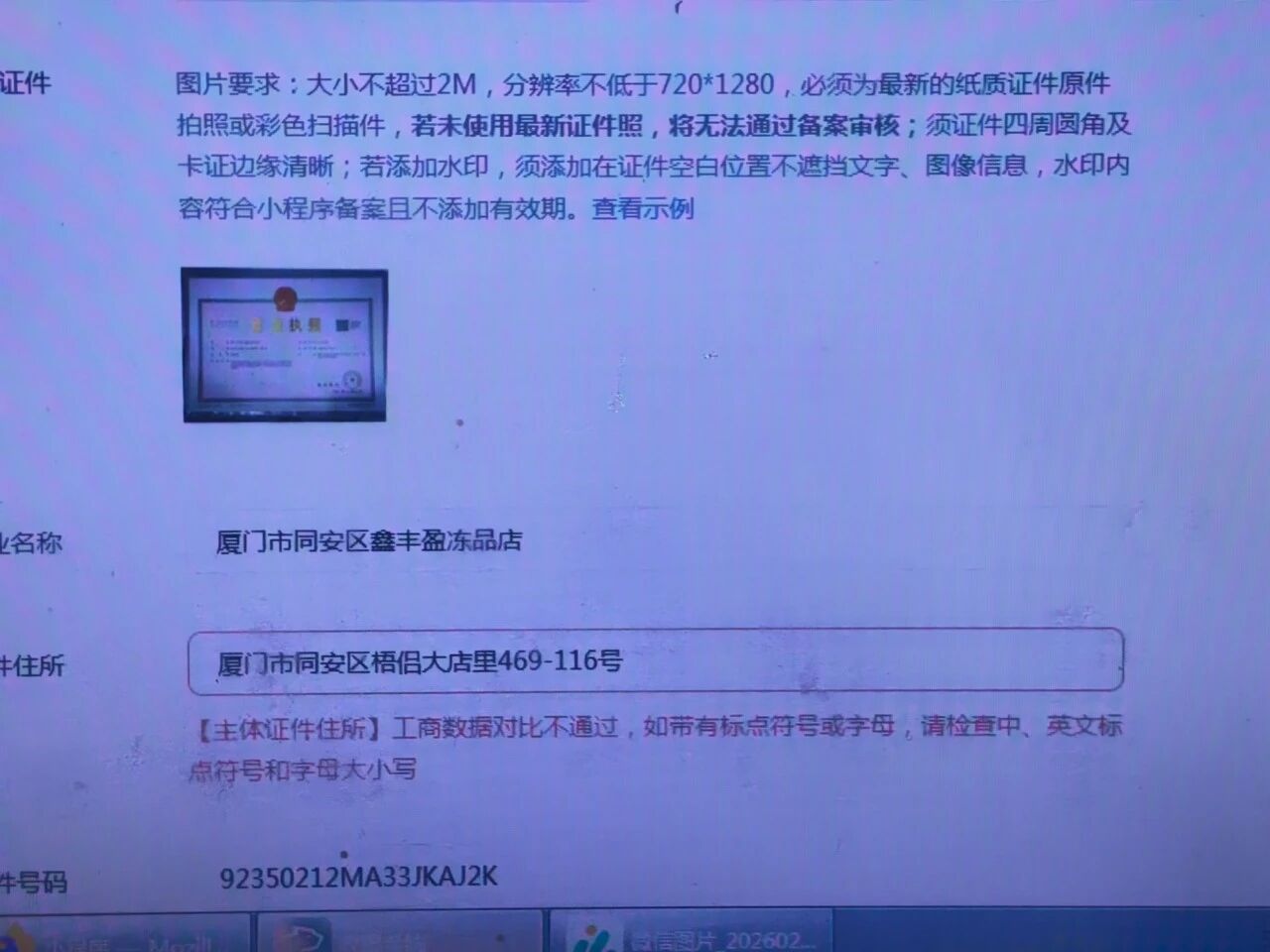 企业名称,地址,企业代码,都是我上传营业执照后自动跳出来的,所以正常是不会出错的