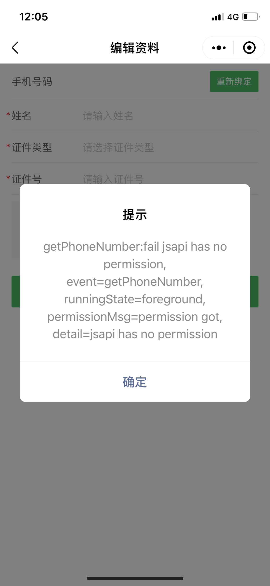 注意:目前该接口针对非个人开发者,且完成了认证的小程序开放(不包含海外主体)。需谨慎使用,若用户举报较多或被发现在不必要场景下使用,微信有权永久回收该小程序的该接口权限。