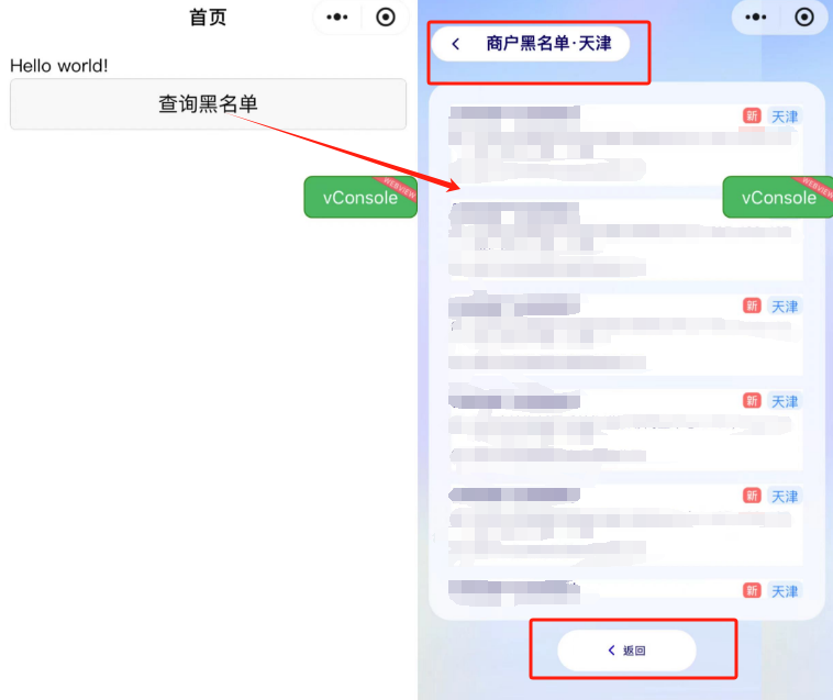 你好,经核实,插件最新未审核版本,点击【返回】【商户黑名单*天津】功能无响应,建议撤回版本修复或在提审页面上传插件完整内容截图协助核实。后续审核将以实际提审的服务内容为准。