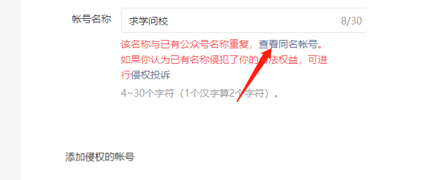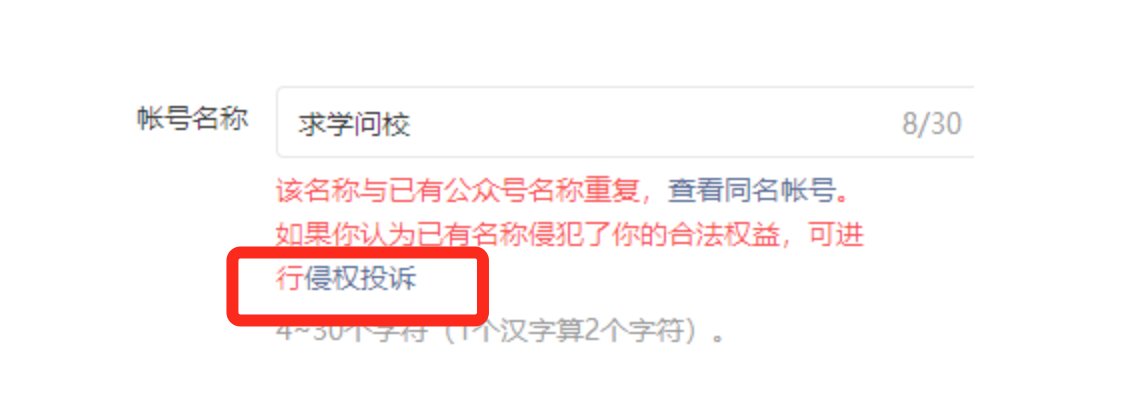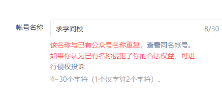 在注册新的公众号的时候,显示名称被占用,是以公司名称注册的可以投诉,但是走到投诉那一步却没有搜到相同名字的公众号,无法投诉 ,也无法注册,需要怎么解决?