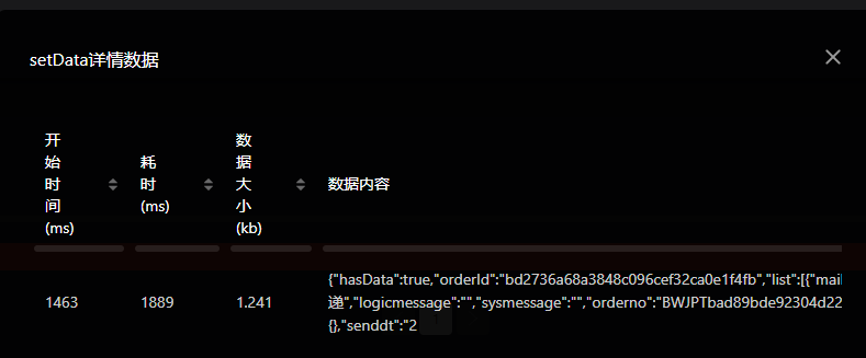 这个页面只有这一个setData,数据也不大,但是耗时1.889秒。