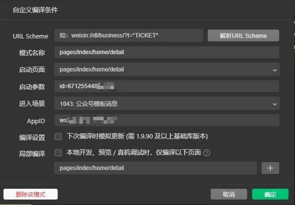 使用微信开发者工具的自定义编译功能,怎么搞都拿不到这个参数,直接报undefined