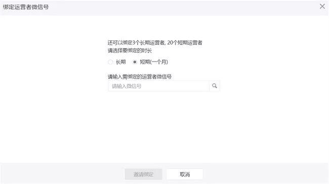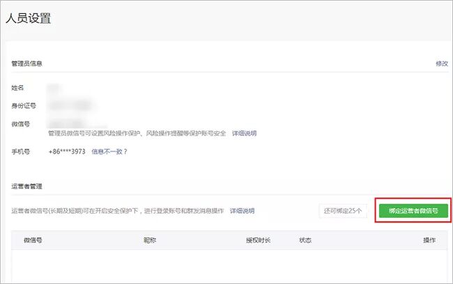 3)最多可绑定25个运营者微信号:5个长期运营者,20个短期运营者。