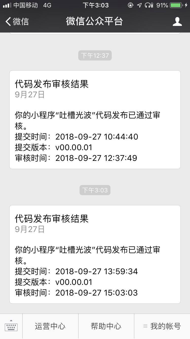 通过我们的第三方平台提审的小程序,审核通过了,但平台没有收到审核结果通知。但另外一个小程序审核通过了,是可以收到结果通知