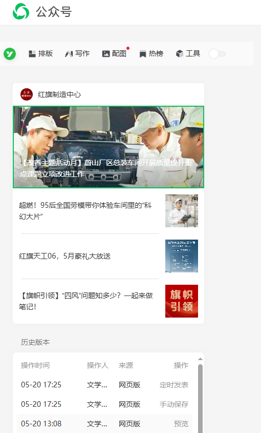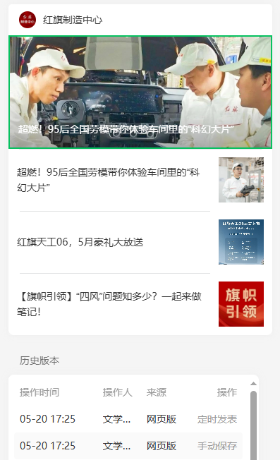 您好,微信公众号“红旗制造中心”在今日群发通知了四篇文章,其中第一篇头条标题“【改善主题活动月】蔚山厂区总装车间开展质量提升重点课题立项改进工作”在发表后后被修改为了第二篇的标题“超燃!95后全国劳模带你体验车间里的“科幻大片””,请问是什么原因,应该如何避免,是否可以解决