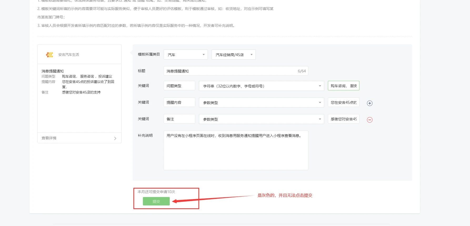 编辑好信息后,提交按钮是灰色,且无可点击状态