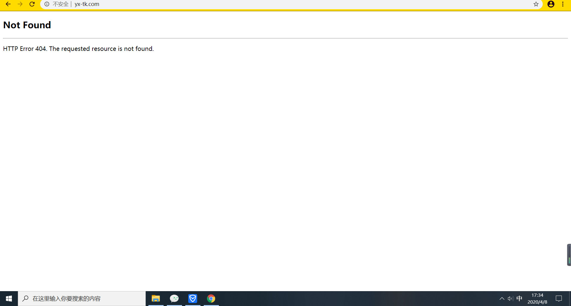 http://www.yx-tk.com/这个网站,PC端,手机自带浏览器都能打开,微信里面始终报404错误,手机微信和PC微信都一样。