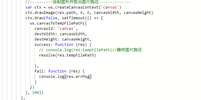 wx.canvasToTempFilePath--->最后就是调用wx.canvasToTempFilePath,将画布的图片转成微信盒子返回的临时路径
