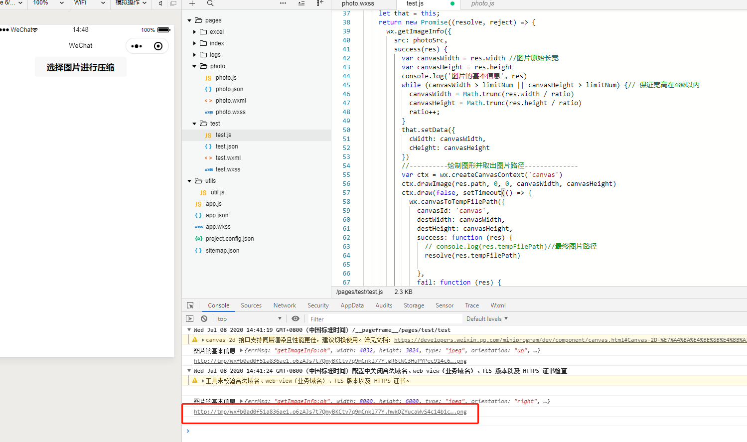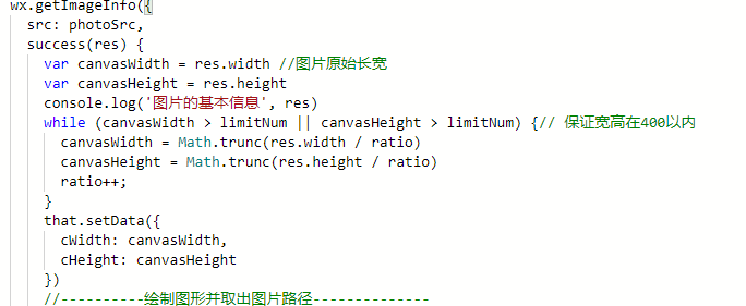 wx.getImageInfo--->然后获取照片原来的宽高,进行一个压缩,这里可能跟平时的h5 canvas用法不太一样