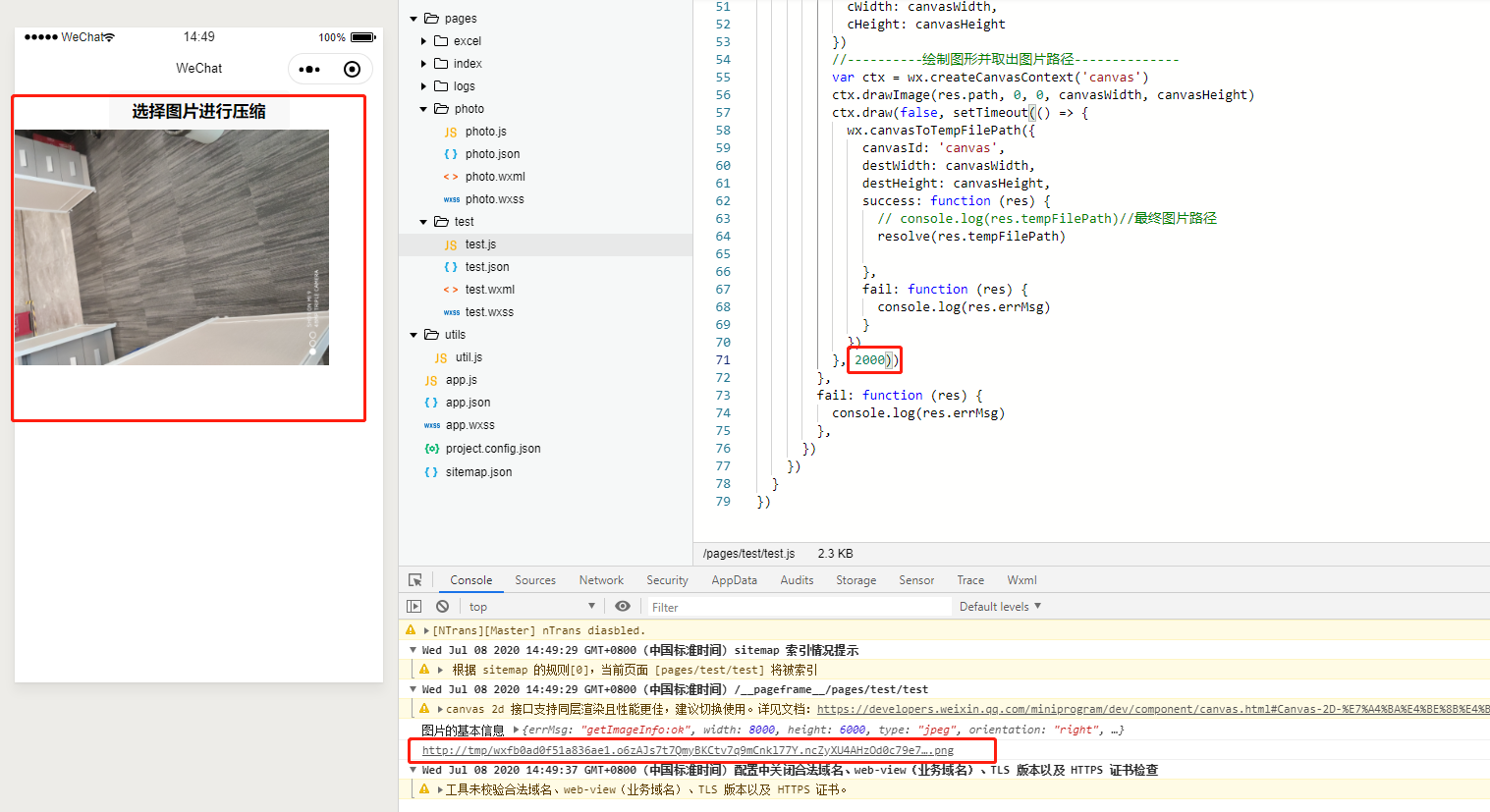我突然想到一个问题,canvas绘制需要时间,而我看了一下我上传的安卓图片大小是14M,我就想是不是延时时间给的不够
