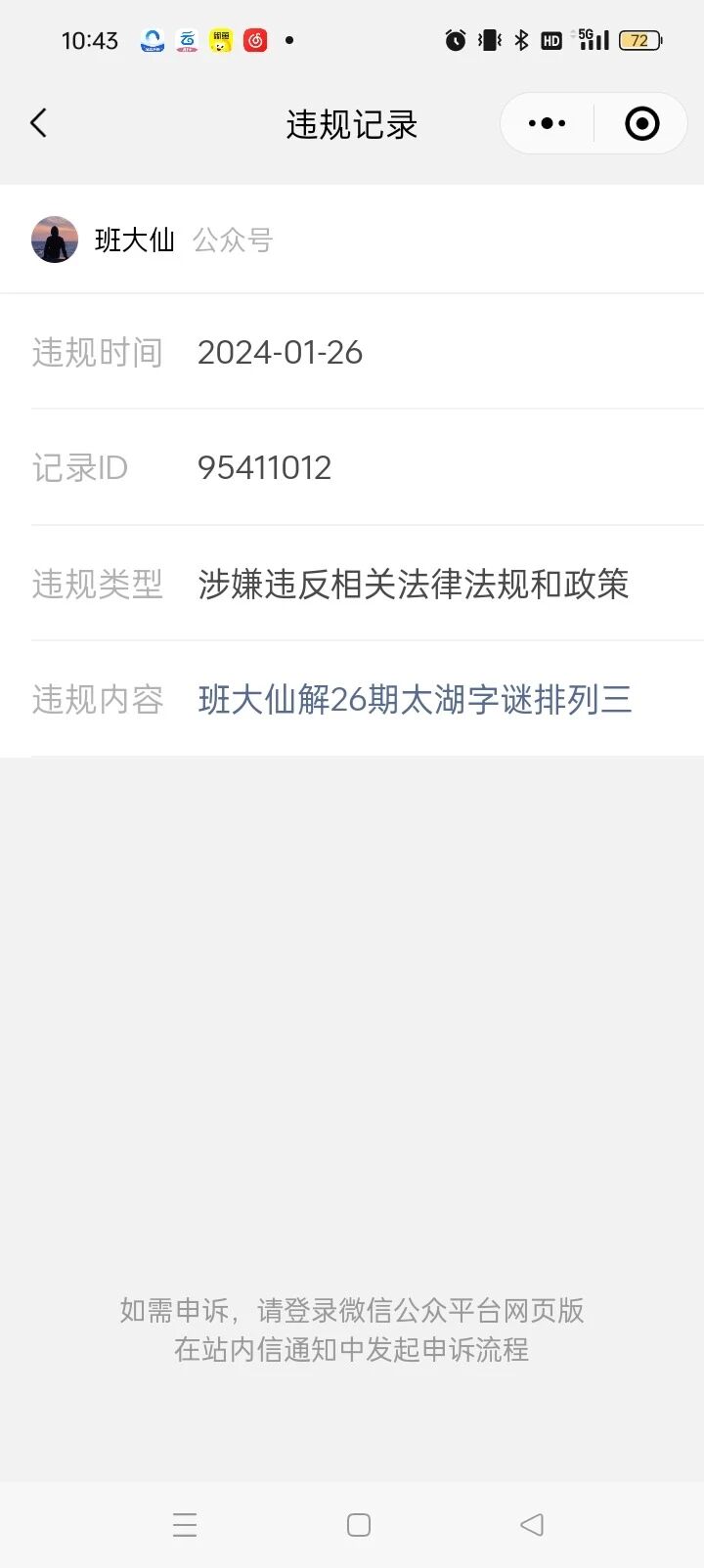 尊敬的微信团队: 您好!我是公众号「班大仙」的运营者(绑定手机号:18823247294,申请过一次了,都没有成功呢,已经对我生活影响太多了。 由于我之前看到人家在微信公众号发彩票预测,我不知道就跟后发了,结果直接封永久封号了,人家的发的都不被封号呢,是你们平时监控不到位呢,因对平台规则理解不足,此前发布了彩票预测分析类内容,现已深刻认识到此类内容违反《微信公众平台运营规范》(禁止赌博、博彩信息传播)。 特此提交解封申请, 具体说明如下: 违规原因说明 本人误以为彩票分析属于普通资讯分享,未意识到其敏感性质。参考其他账号发布类似内容后未及时自查,现已删除全部违规文章。 整改承诺 立即停止一切与彩票、博彩相关的内容发布 组织团队学习《微信公众平台规则》并建立内容三级审核机制 转型发布生活服务类合规内容(如传统文化科普) 账号信息 公众号名称:班大仙 绑定手机:18823247294 致谢与诉求* 感谢平台长期以来为创作者提供的服务,此次教训让我深刻认识到合规运营的重要性。恳请团队给予整改机会,未来定严格遵守规则,共同维护健康网络环境。 申请人:班忠财 申请日期:2025年8月17日