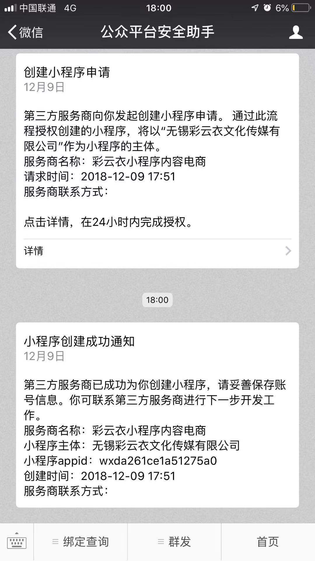 关注后,可在微信内接收相应的重要提醒。
