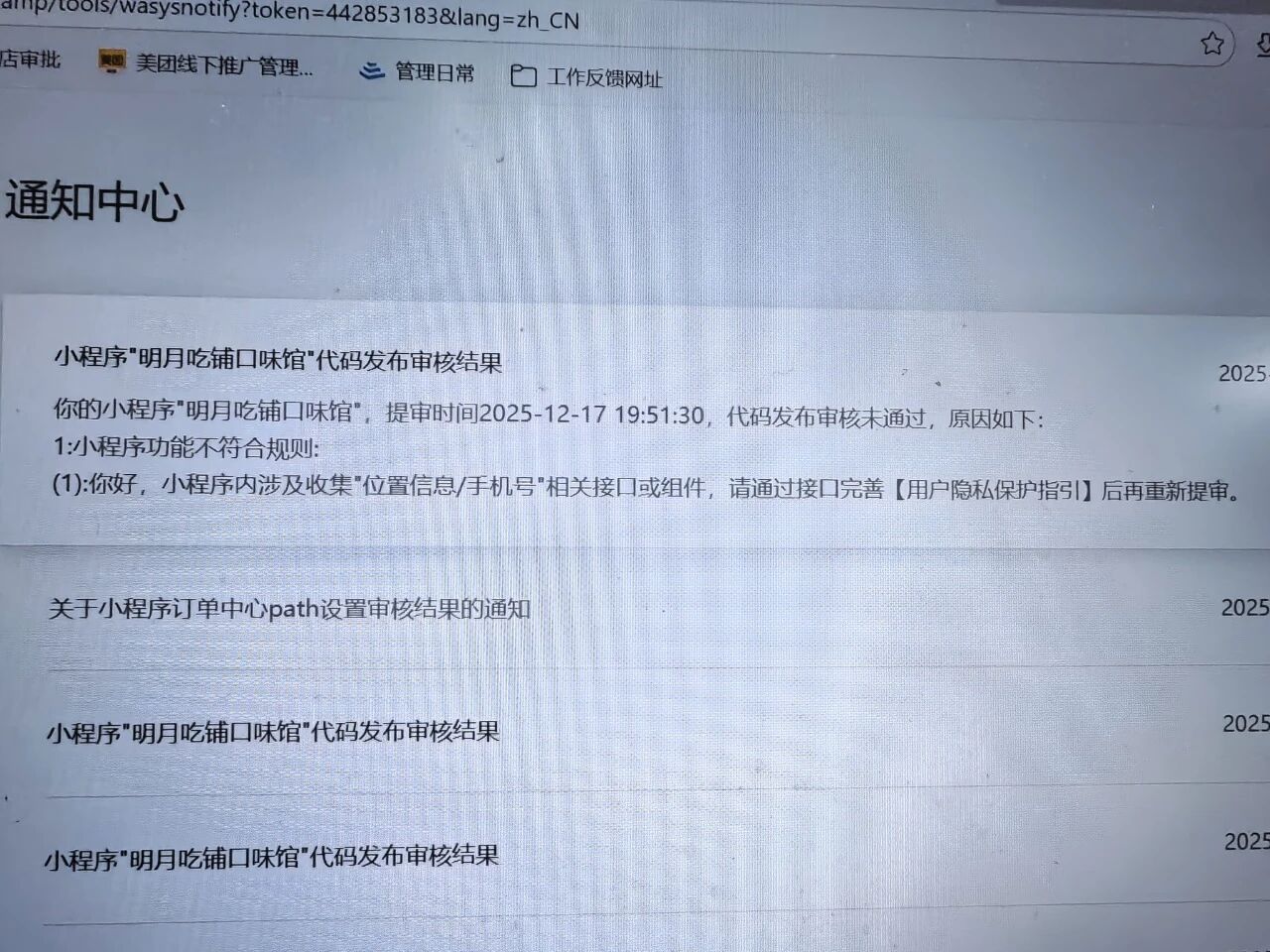 你好,请先检查是否更新或完善小程序《用户隐私保护指引》。可前往“https://mp.weixin.qq.com/登录你的小程序-左下角头像的账号设置-基础设置-服务内容声明模块”或代码提审时完善《用户隐私保护指引》。若于到期未完善,将回收小程序隐私接口调用权限,建议你尽快完善小程序得《用户隐私保护指引》。可参考:https://developers.weixin.qq.com/community/develop/doc/00062a6d514c88baacdf52e8a56009
