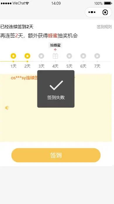 使用单页模板签到打卡前两天打卡正常,第三天打卡失败,没有抱任何错误,不知道什么原因?