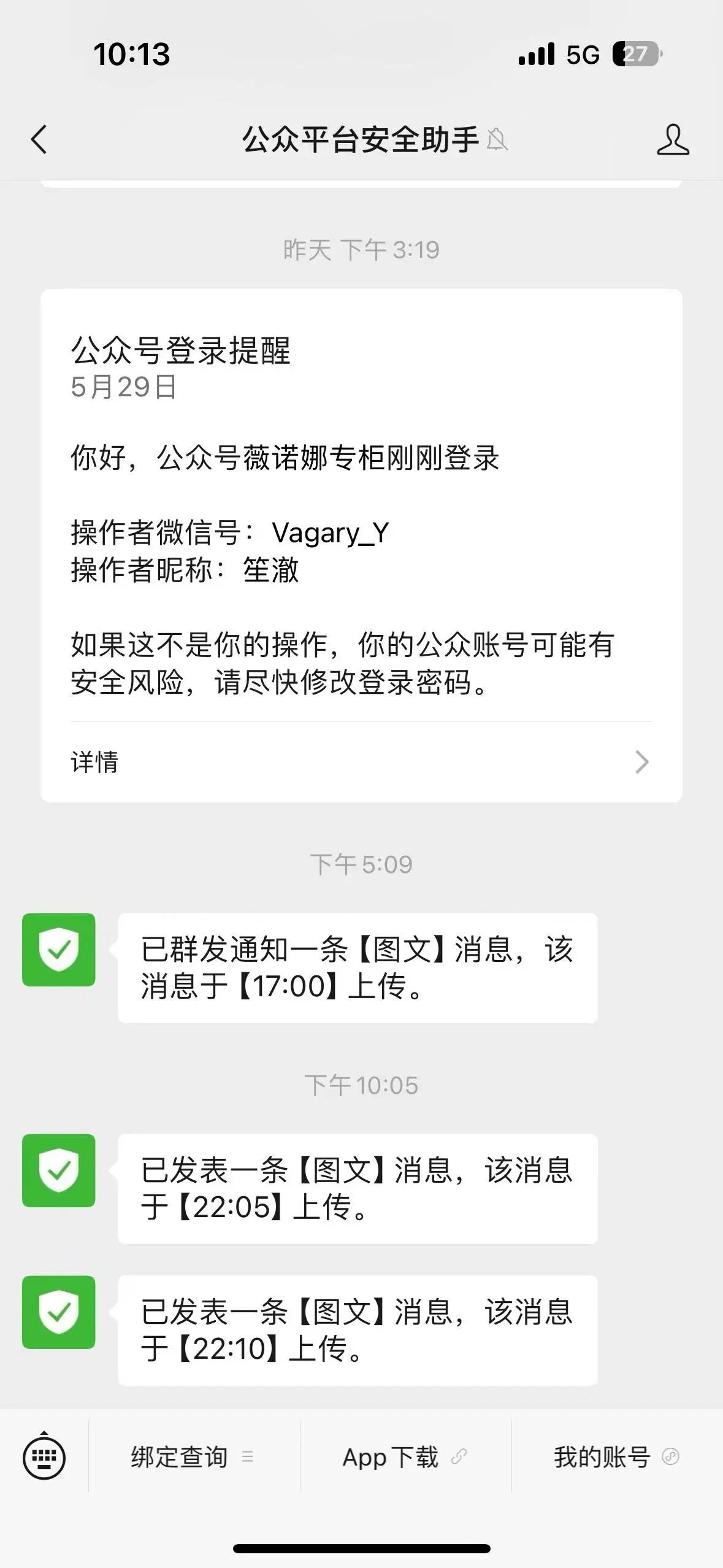 【问题描述】: 微信公众号后台显示通过api端发布两条草稿消息,是什么原因?且发布地显示在河北,辛苦尽快回复,6月1有群发次数了,担心会再次出现