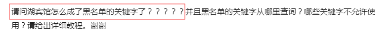 请问湖宾馆怎么成了黑名单的关键字了?????并且黑名单的关键字从哪里查询?哪些关键字不允许使用?请给出详细教程。谢谢