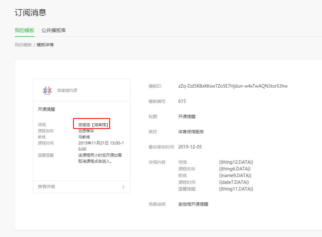 这个模版申请的时候是可以通过的,场馆名称没问题,但是在实际使用的过程中场馆名称就是这个,服务端发送订阅消息时提示这样的请求结果: