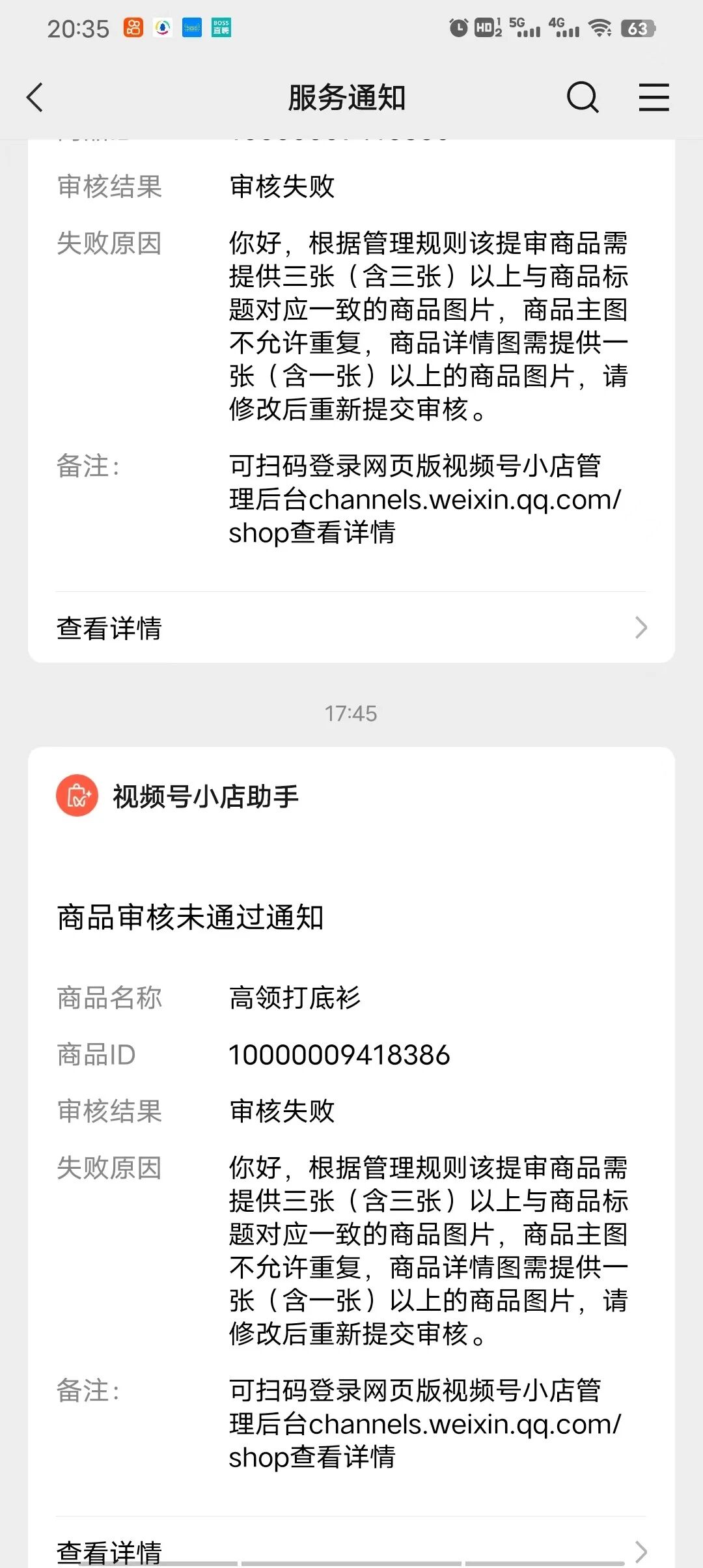 我的也是,按照提示的原因改了无数次,上10个一样的只有一个能通过,一般要等至少4天。然后现在直接不准我上链接,保证金交了两万,就搞成这样。