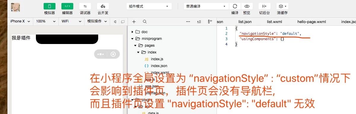 在插件页面的json配置文件中设置导航栏样式为默认类型没有效果, 而且也没有api可以设置导航栏的样式为默认类型