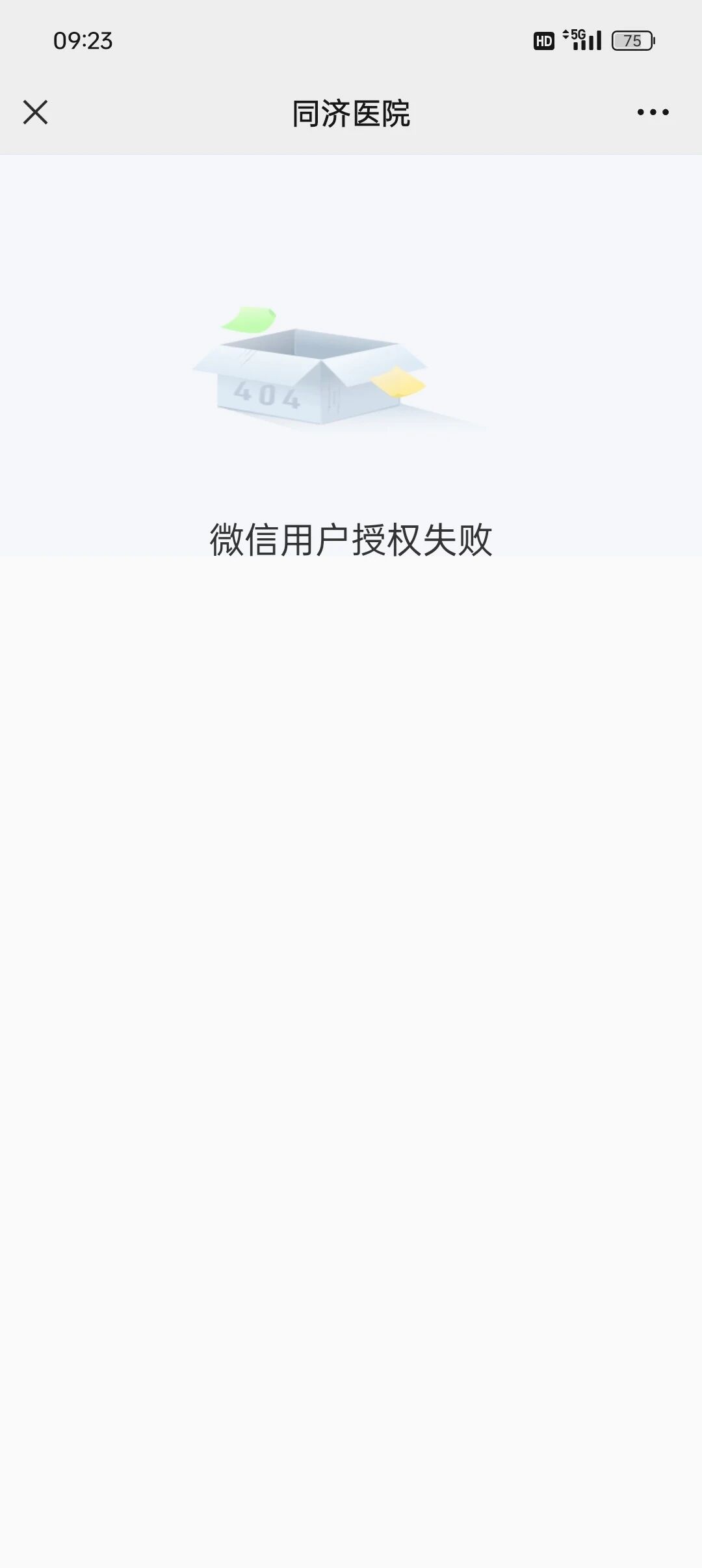 打开微信公众号,华中科技大学同济医院。点开页面显示微信用户授权失败。是什么原因