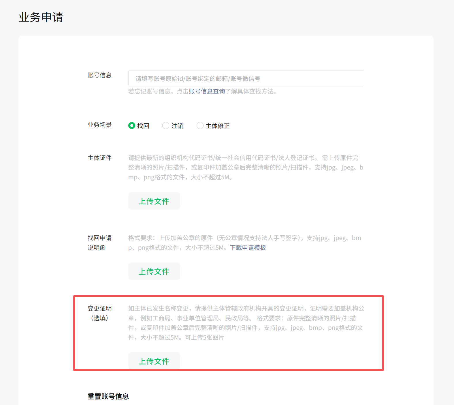 如题,已于申请表中提交主体变更证明,但还以账号主体名称变更的理由审核不通过