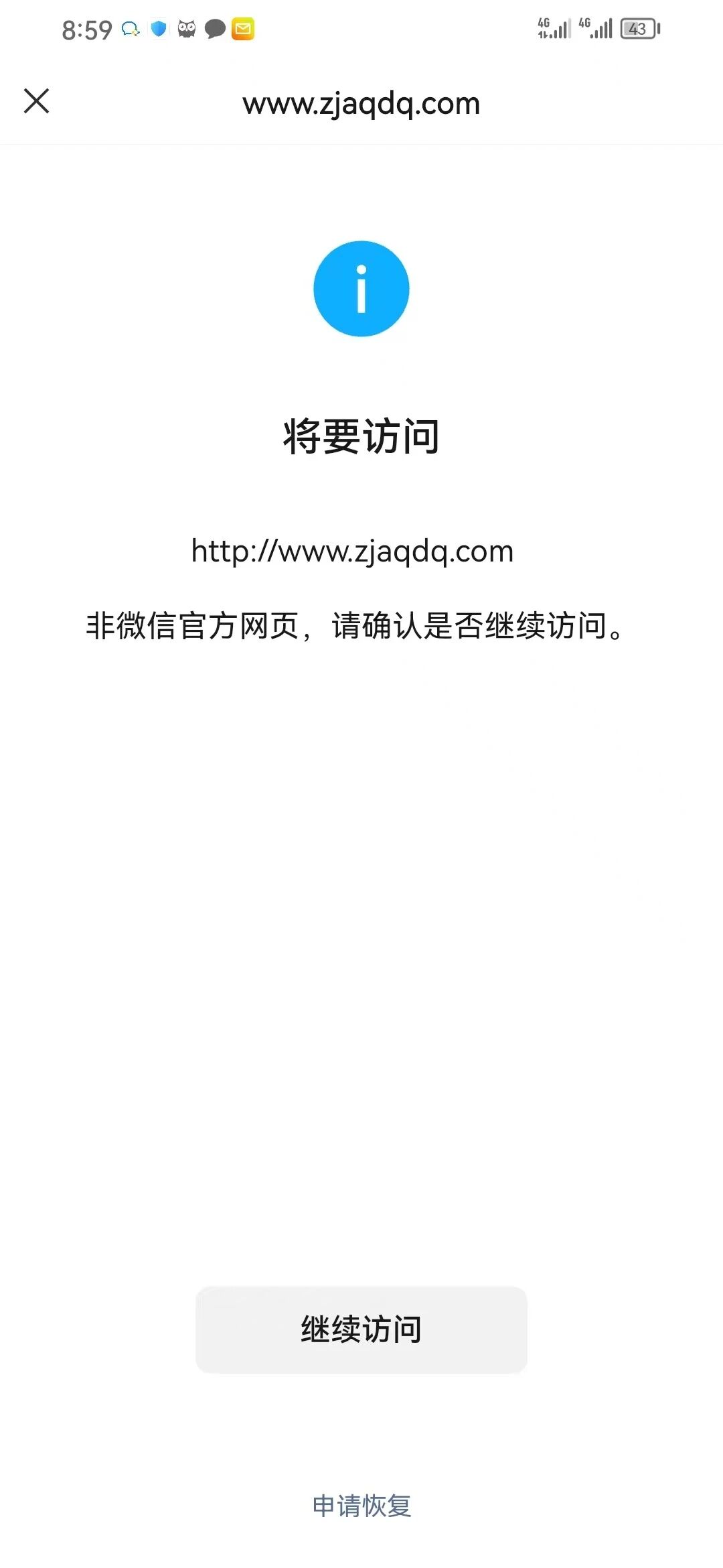 http://www.zjaqdq.com/无法确认该网页的安全性,请谨慎访问?请解除拦截,谢谢!